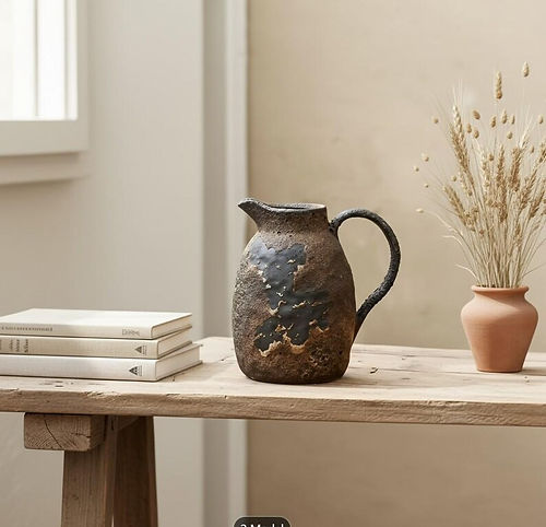 This handcrafted ceramic pitcher vase brings raw texture and authentic wabi-sabi character into any space.Each...