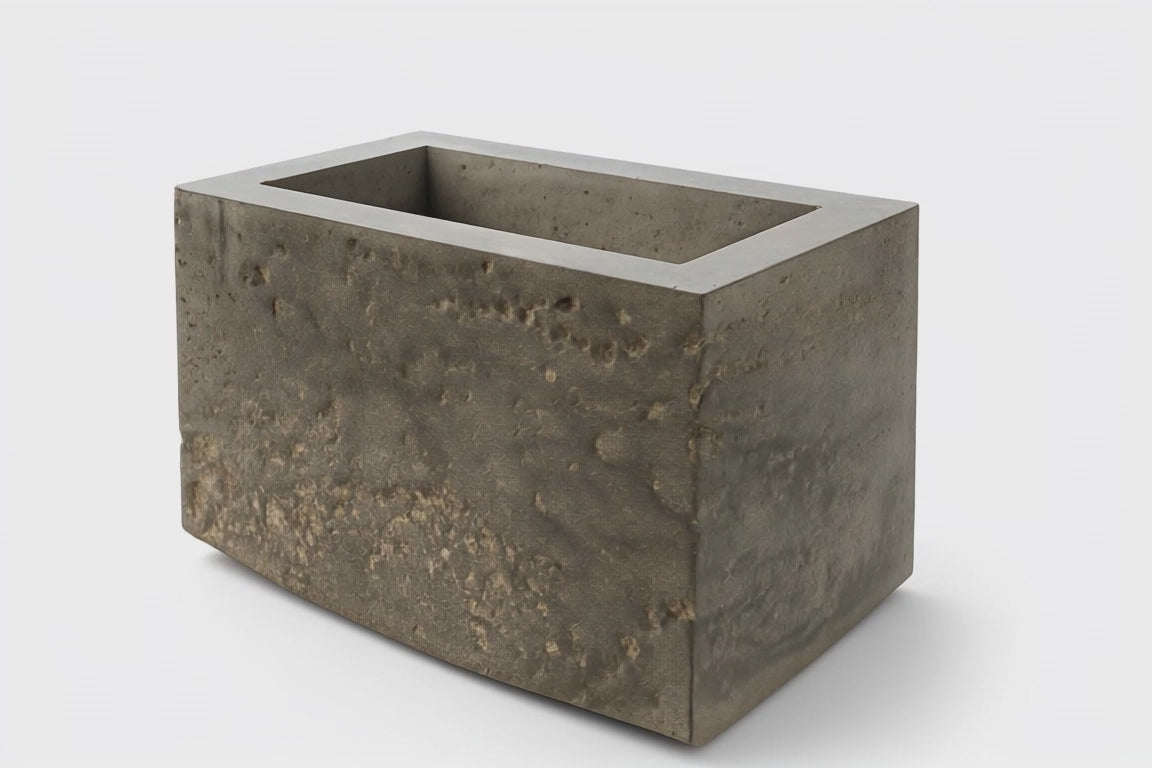 This rectangular concrete storage box is a sculptural piece with a strong urban-industrial presence. Each box is individually poured, polished and sealed by hand, giving it a unique raw texture and a refined architectural feel. Perfect for organizing everyday items or as a minimalist addition to any room