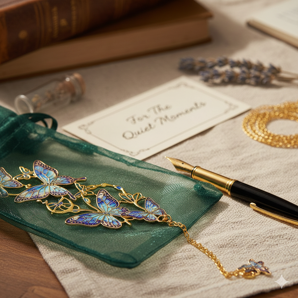 Place the butterfly bookmarks between pages. The chain and charm hang outside the book, making your page easy to find — and adding a beautiful decorative touch.
