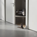 Its weight and low-profile wedge design make it suitable for interior doors in living rooms, entryways, studios, and workspaces.