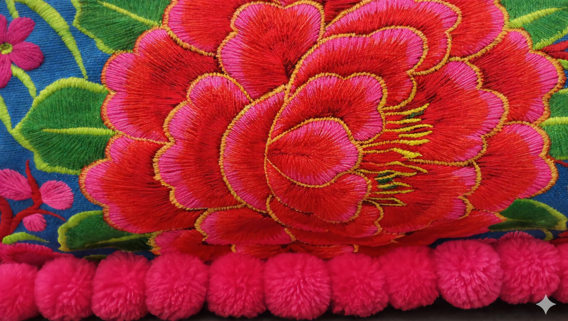 Embroidery tones may lean subtly greenish under certain light conditions and fuchsia on the other variation.