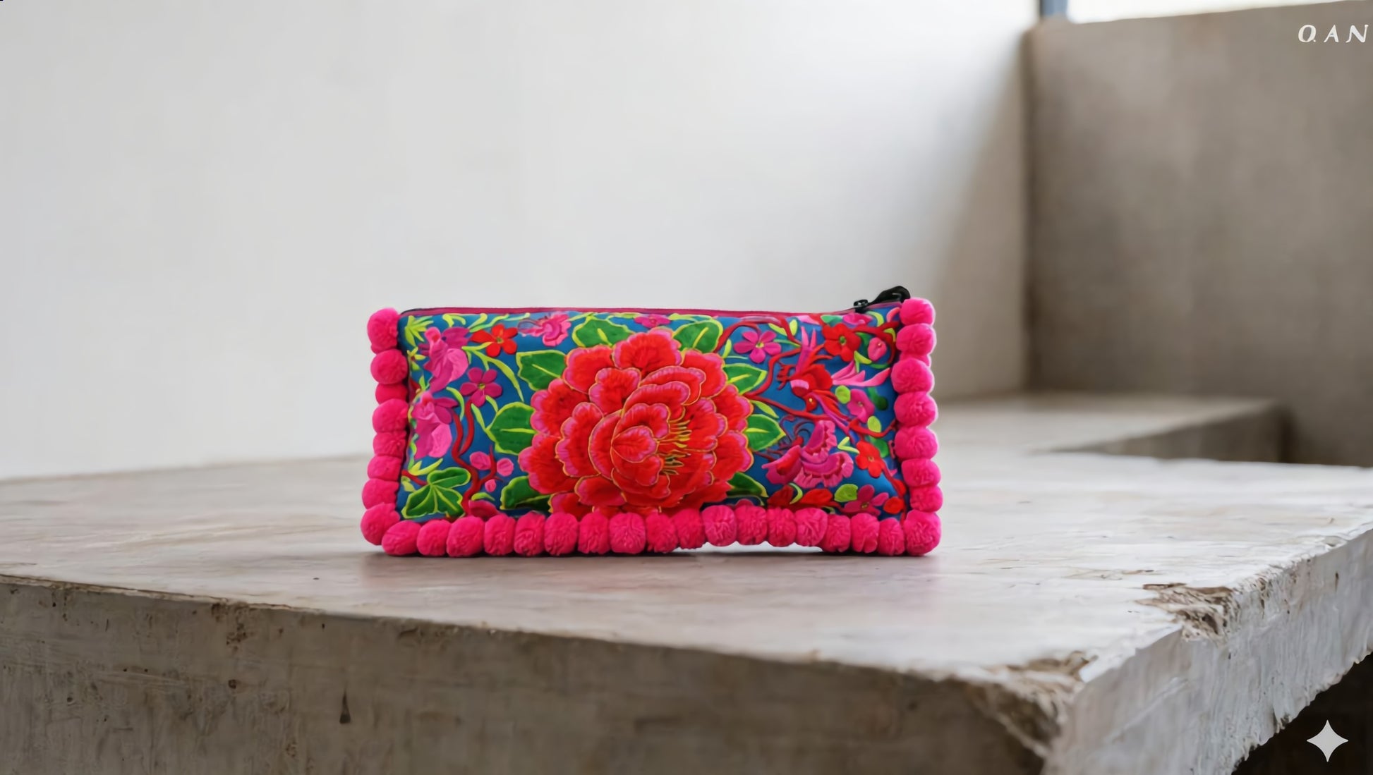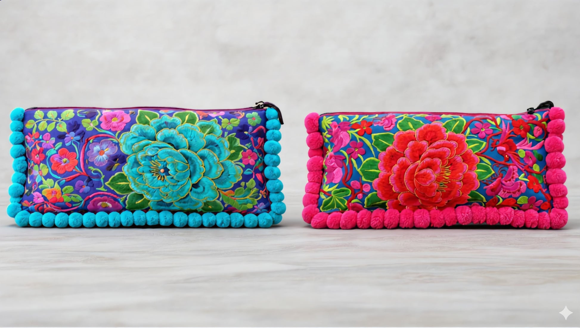 Featuring detailed floral embroidery and a clean, structured silhouette, it’s designed for everyday organization—whether at home or while traveling.