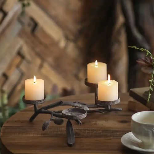 This sculptural candle holder merges rustic texture with minimalist design. handcrafted from solid iron in a branch-like form, it features four elevated candle plates, creating a bold yet refined centerpiece for any modern space. perfect for adding a timeless urban accent to your dining table, mantel, or entryway.